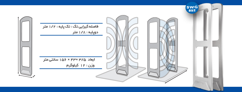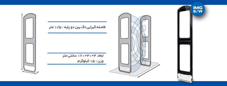 فاصله گیرایی تگ : دو فضای 150 سانتی متری بین آنتن ها(150cmx2=300cm ) (با تگ صدفی درجه 1 مارکدار ایمن موج)